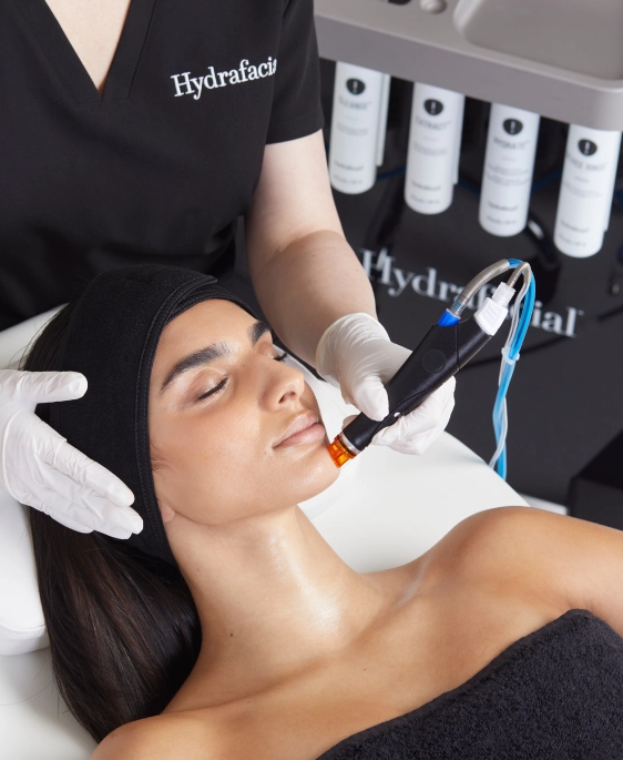 HydraFacial® is a non-invasive, multi-step facial treatment that cleanses, exfoliates, extracts impurities, and hydrates the skin using patented Vortex-Fusion technology. It leaves the skin refreshed, radiant, and deeply nourished after just one session.